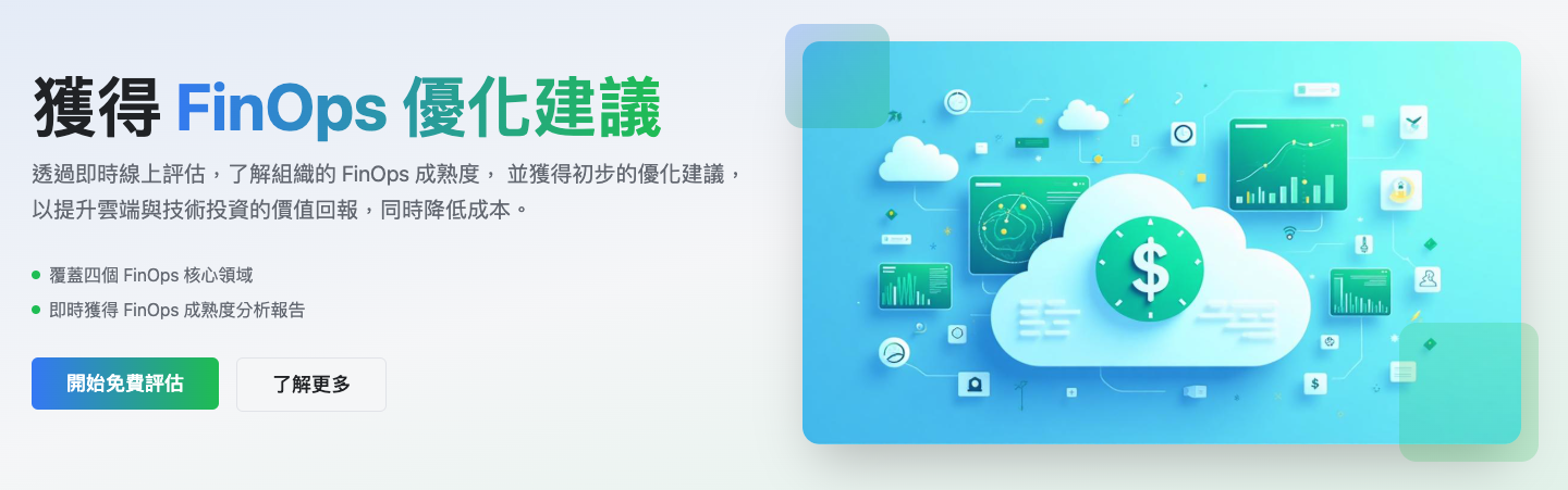 FinOps 雲端財務維運加速器提供企業專屬的雲端開支管理方案,透過客製化儀表板,全面監控雲端資源使用並主動偵測異常,持續優化多雲費率、資源配置及雲端架構,促進跨部門協作,提升財務透明度,並策略性推進 FinOps 成熟度。